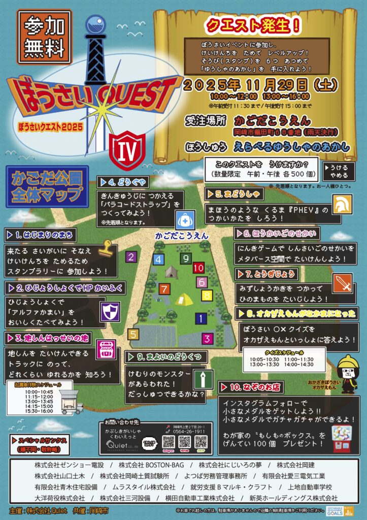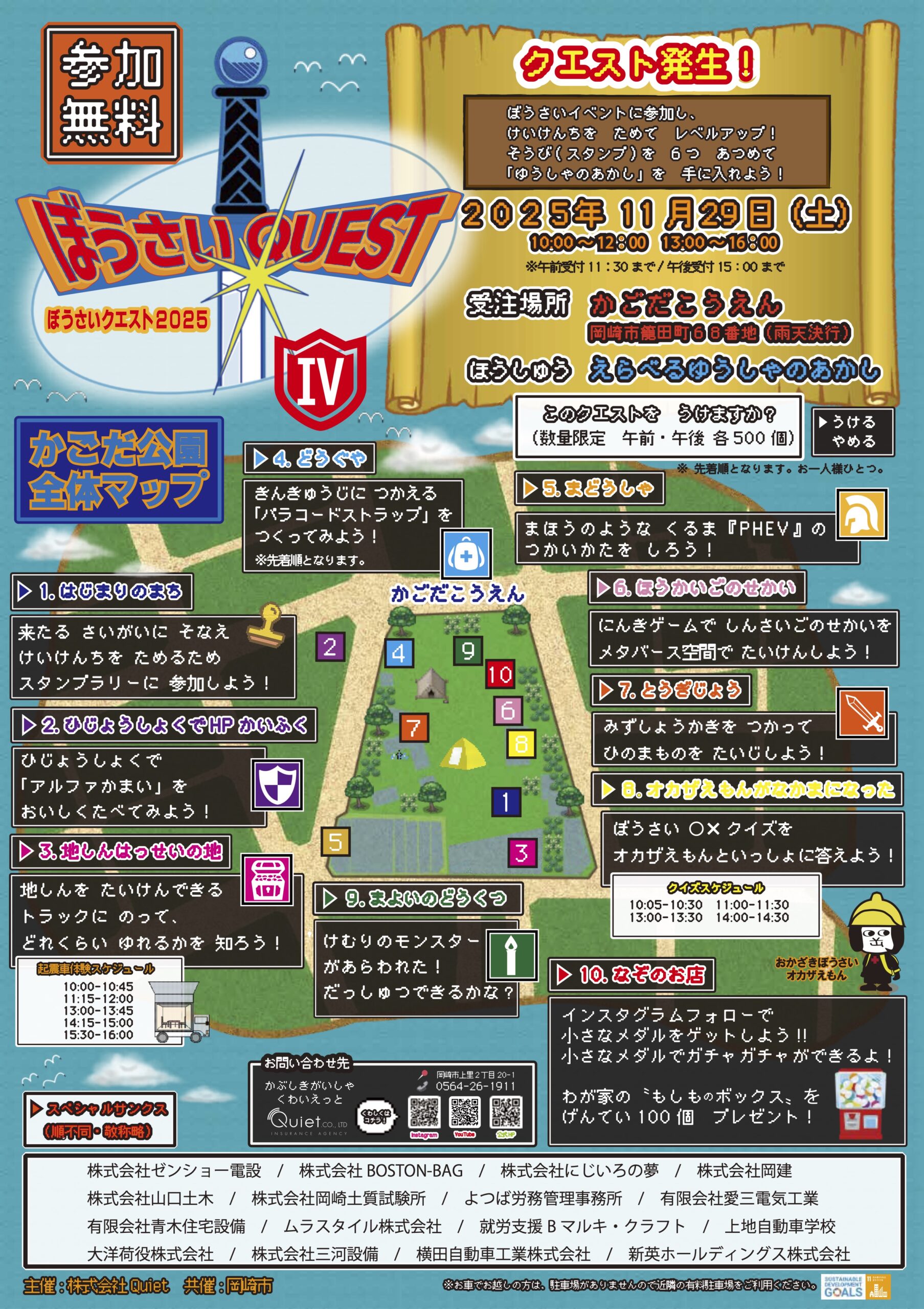 ぼうさいQUEST 場所:籠田公園 拙者はクイズで出没しますぞ!詳細はチラシをご覧くだされ〜 ![]() |